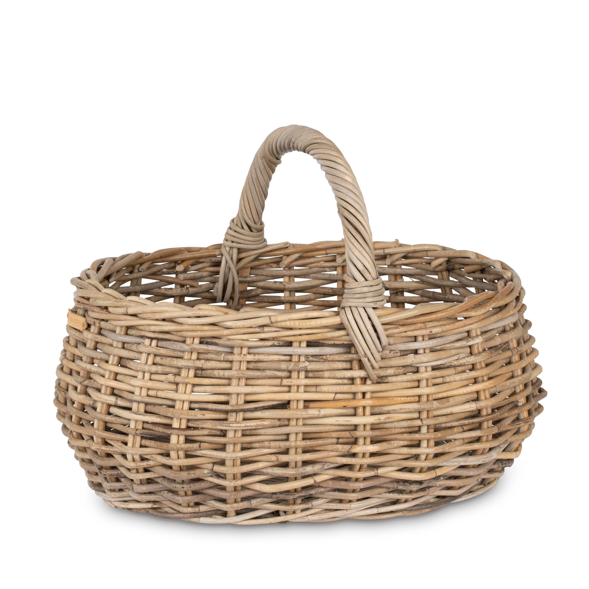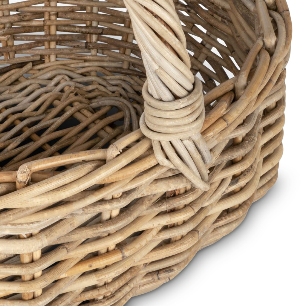 Denne kurv er flettet af Rattan, som er et bæredygtigt materiale fra Asien. Det er et meget solidt og vejrbestandigt materiale. I gamle dage kaldte man det spanskrør.