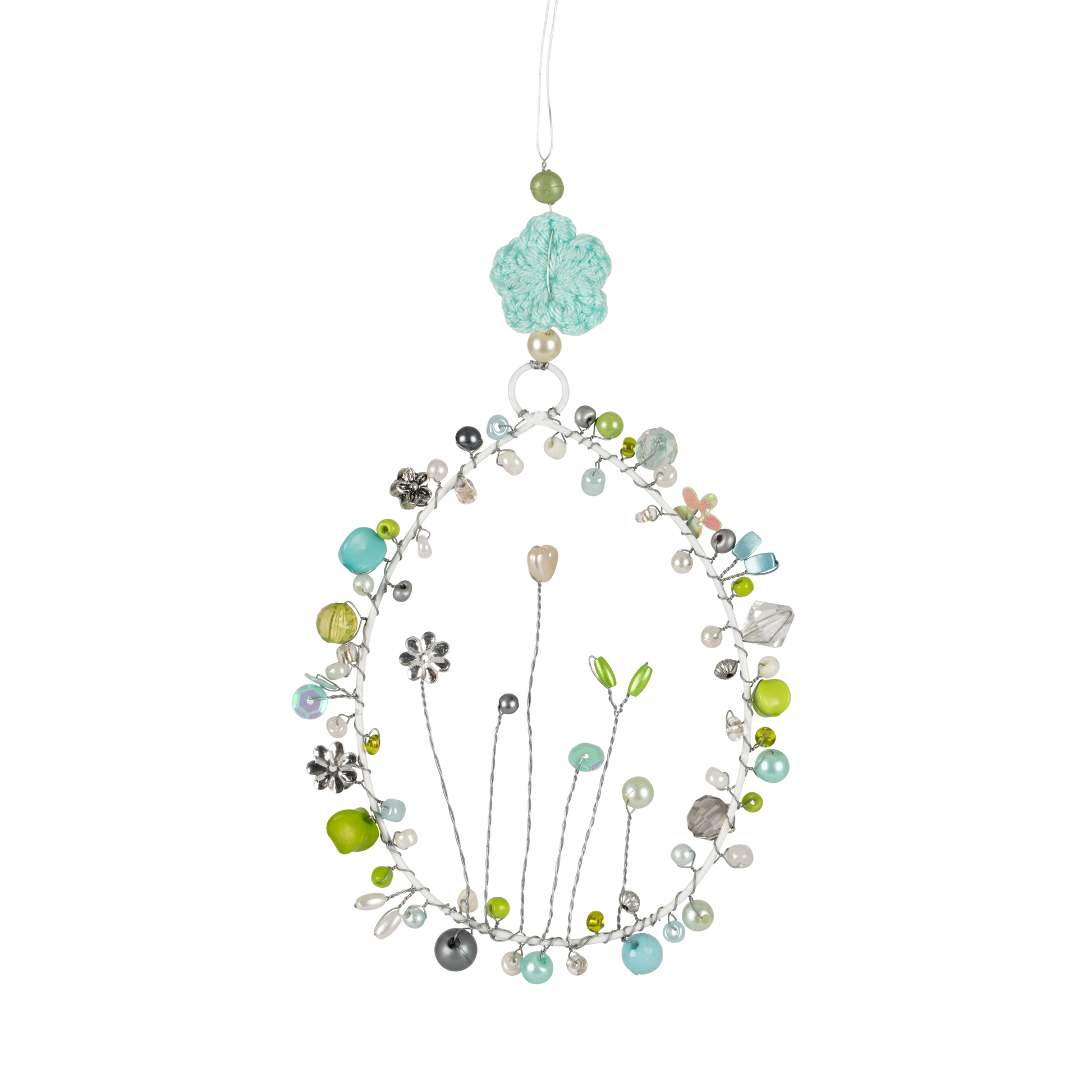 Et sødt påskeæg pyntet med små fine perler i flotte forårsfarver. Det har et let og enkelt udtryk, der passer perfekt ind i den hyggelige påskepynt.