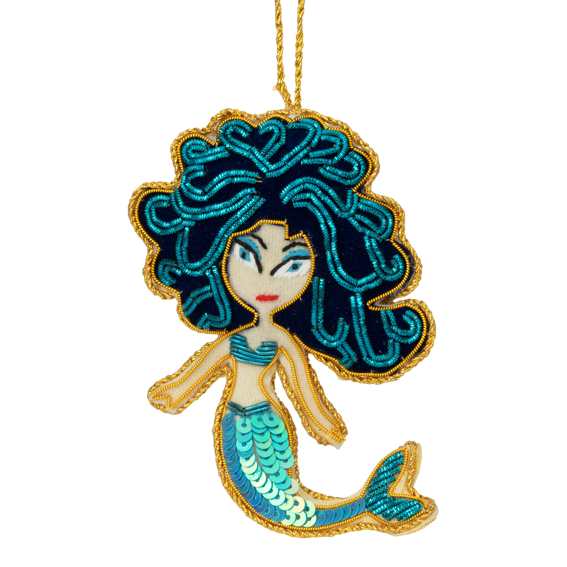 En perlebroderet havfrue, der bringer et strejf af eventyr ind i din julepynt. Håndlavet med fine detaljer og let at hænge på juletræet, en gren eller som en lille overraskelse på en gave. En smuk og anderledes del af julen 🧜♀️🎄